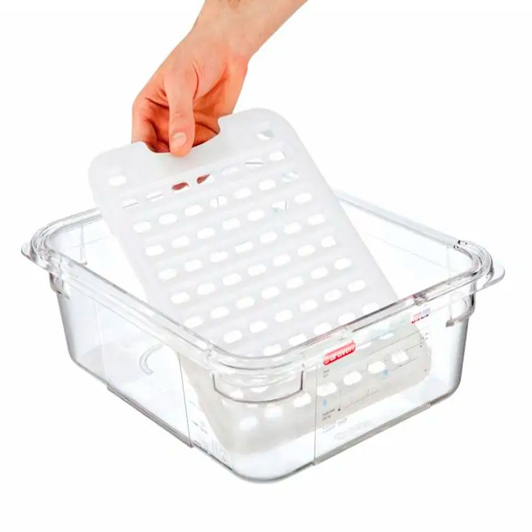 Сушки для гастроємностей GN 1/2 від бренду Araven рекомендовано використовувати для відокремлення рідин продуктів, які виділяють соки.