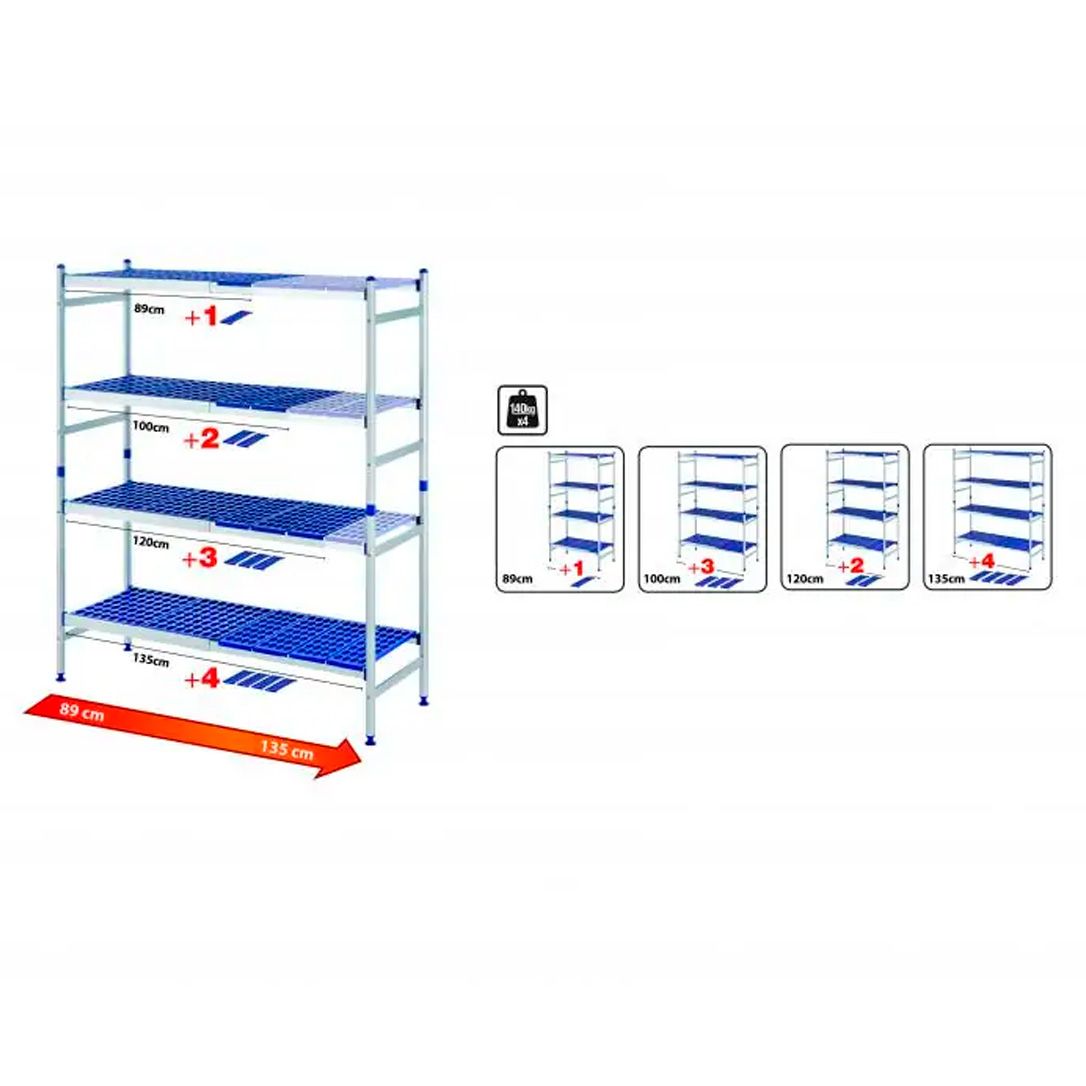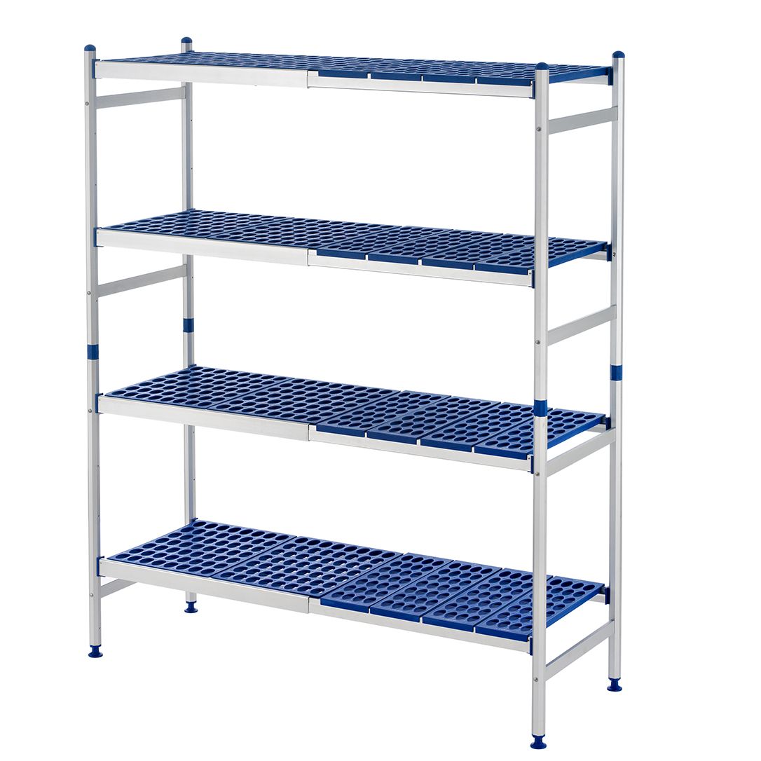 - довговічність: стелаж з поліпропілену та анодованого алюмінію стійкий до ударів та пошкоджень, а також не боїться вологи