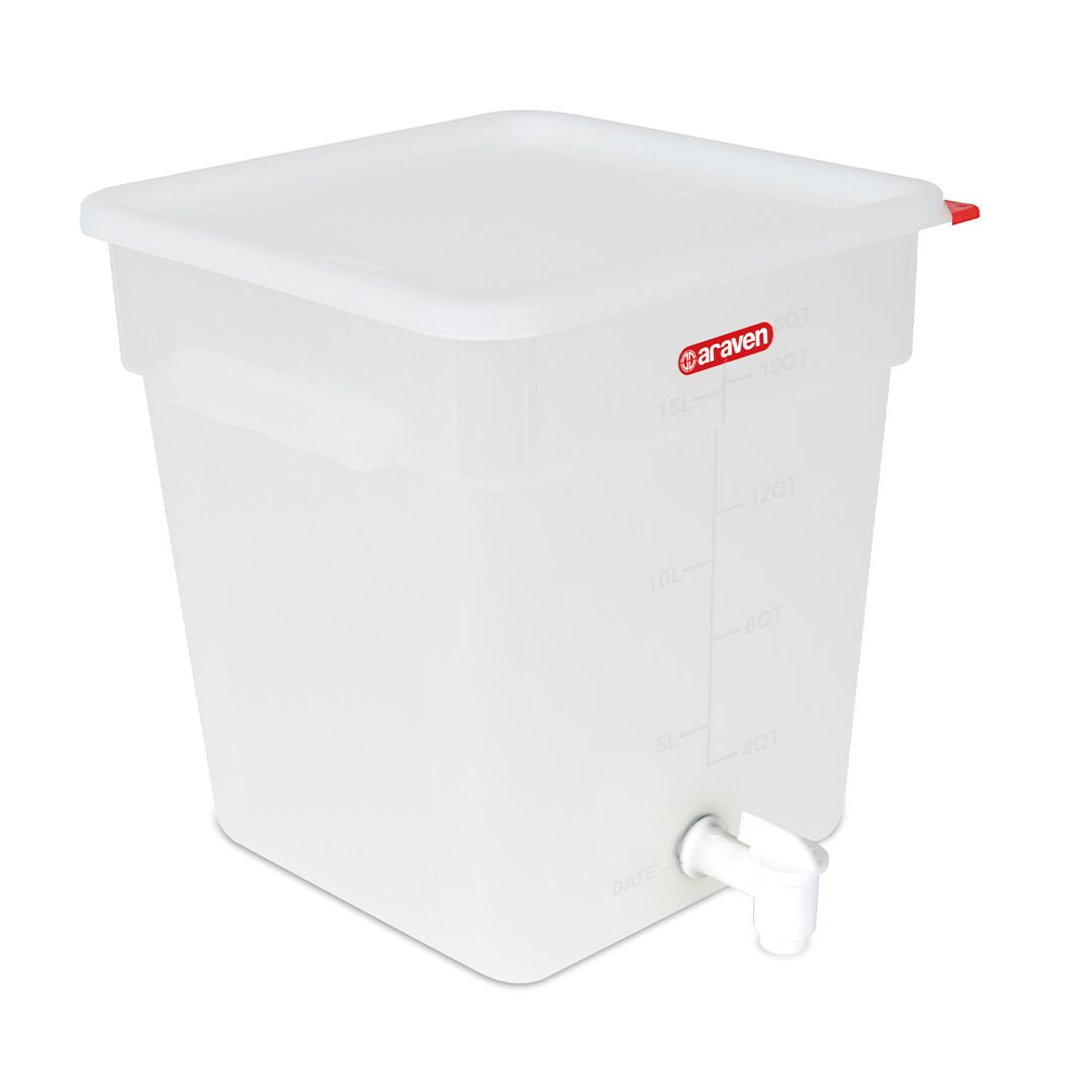 Диспенсер з краном 01368 від іспанського бренду Araven рекомендовано використовувати для дозування та зберігання рідких заготовок: заправок, редукцій, бульйонів і базових соусів.