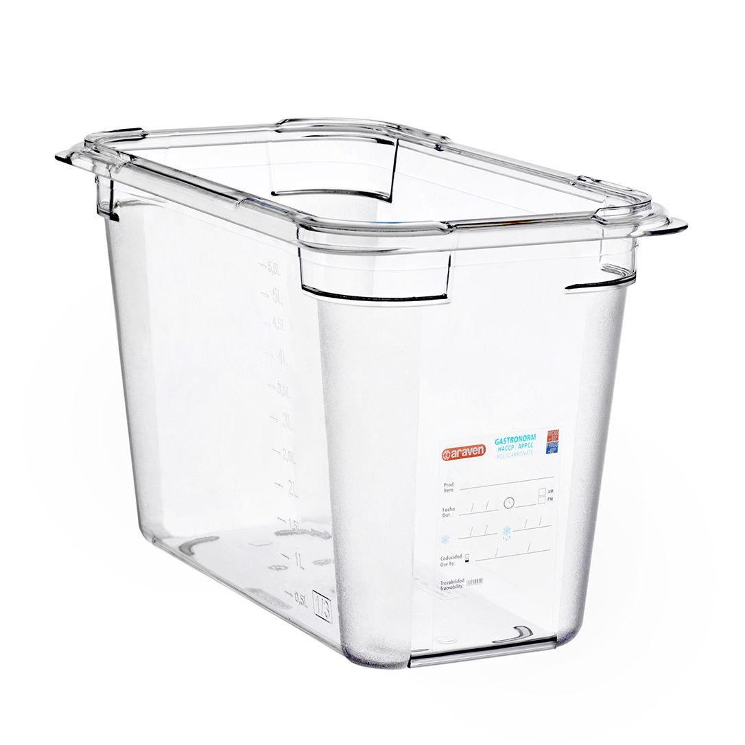 Гастроємність із полікарбонату GN 1/3 від бренду Araven рекомендовано використовувати для викладки та зберігання продуктів у холодильниках. Гастроємності з полікарбонату служать довше порівняно з іншими пластиковими гастроємностями. Матеріал виробу безпечний для контакту з продуктами харчування. Ємність підлягає переробці, завдяки екологічності матеріалу.