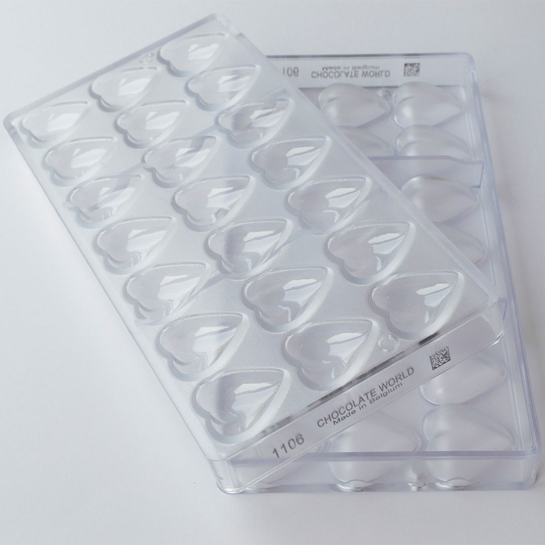 Форма для шоколаду сердечка 1106 CW від світового бренду Chocolate World використовують для приготування шоколадних десертів, цукерок із шоколаду, та десертів із начинками.