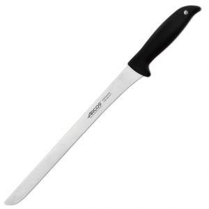 Ніж для хамону 145500 серії Menorca від іспанського бренду Arcos рекомендовано використовувати для для нарізання хамону, прошуто та інших видів сиров’яленого м’яса. Завдяки довгому гнучкому лезу ніж забезпечує рівні, тонкі скибки без розривів структури продукту, зберігаючи його текстуру та смак.