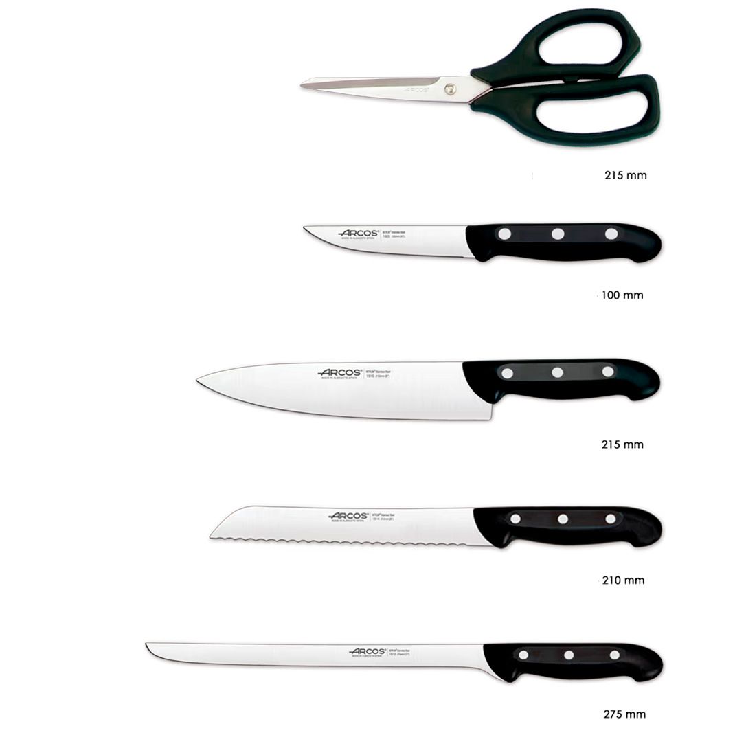 Набір ножів з 5-ти предметівз підставкою 152100 серії Maitre від іспанського бренду Arcos ідеальний для щоденного використання як у домашній кухні, так і в професійному середовищі.