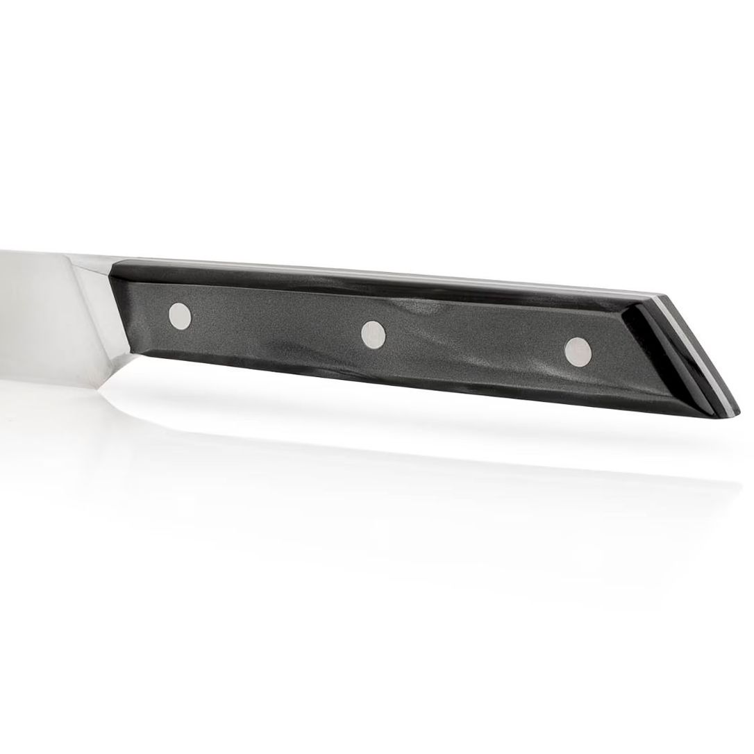 - ергономічне руків’я, перлинно-чорний акрил з унікальними візерунками робить кожен ніж справжнім витвором мистецтва, також вона адаптується до руки, зменшуючи втому при довгій роботі