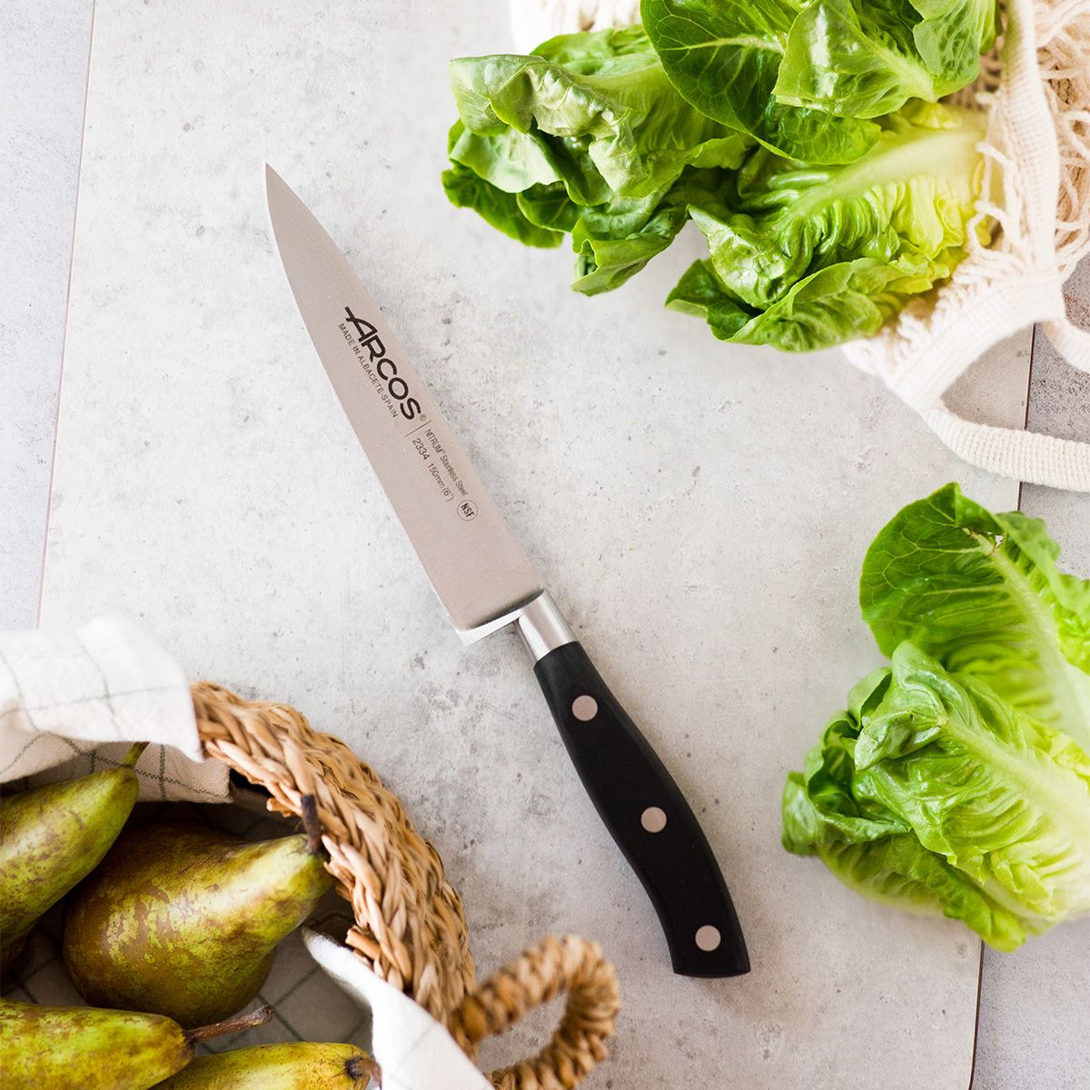 Ніж поварський 233400 серії Riviera від іспанського бренду Arcos це універсальний інструмент для різання овочів та фруктів, а також обробки м'яса та риби.