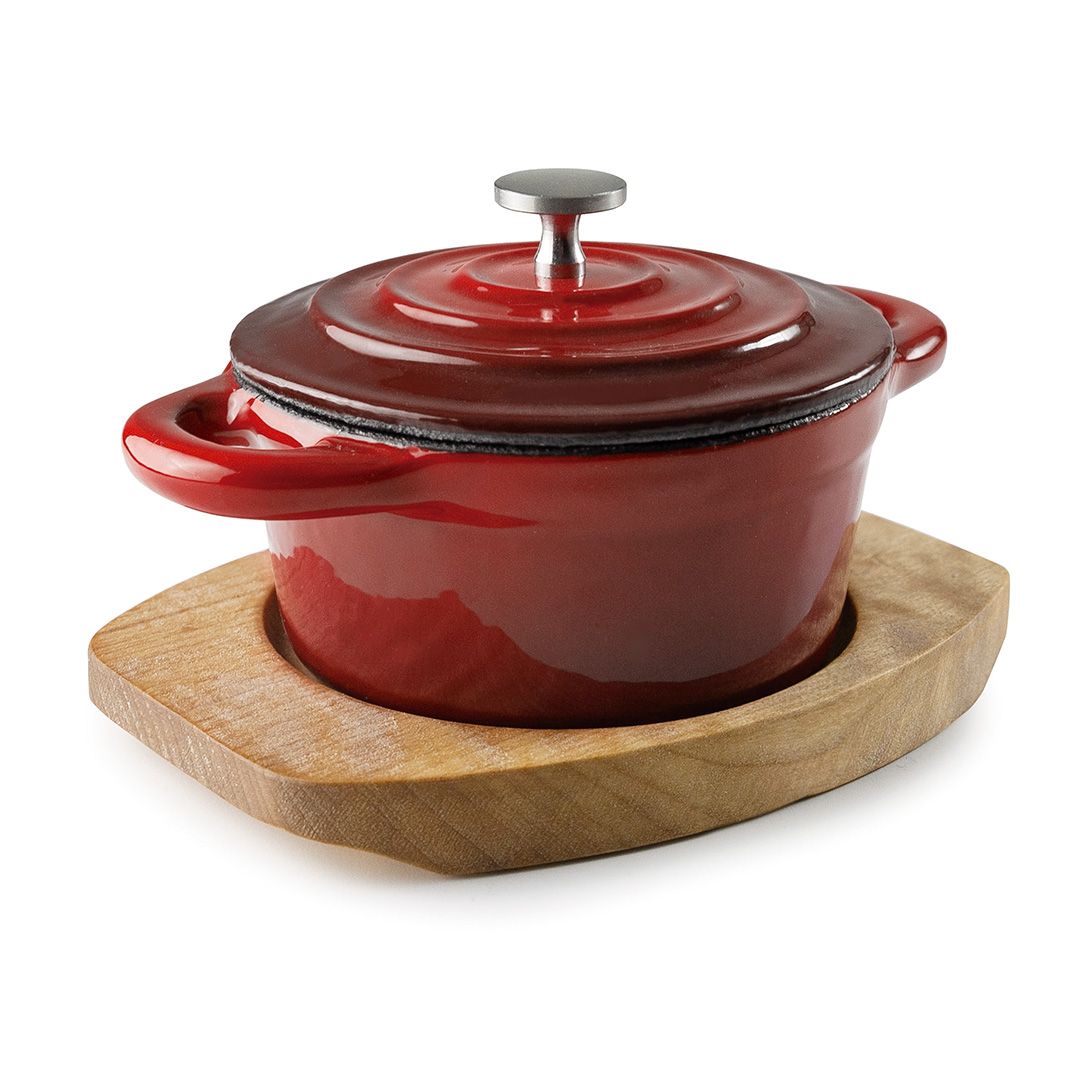 25856 Каструля чавунна з кришкою d-10 см на дерев'яній підставці