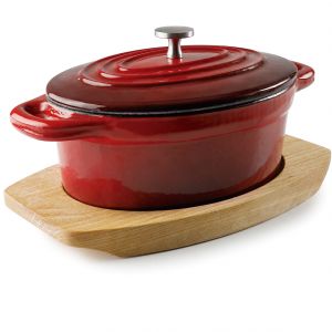 25857 Каструля чавунна овальна з кришкою13х10х5 см на дерев'яній підставці