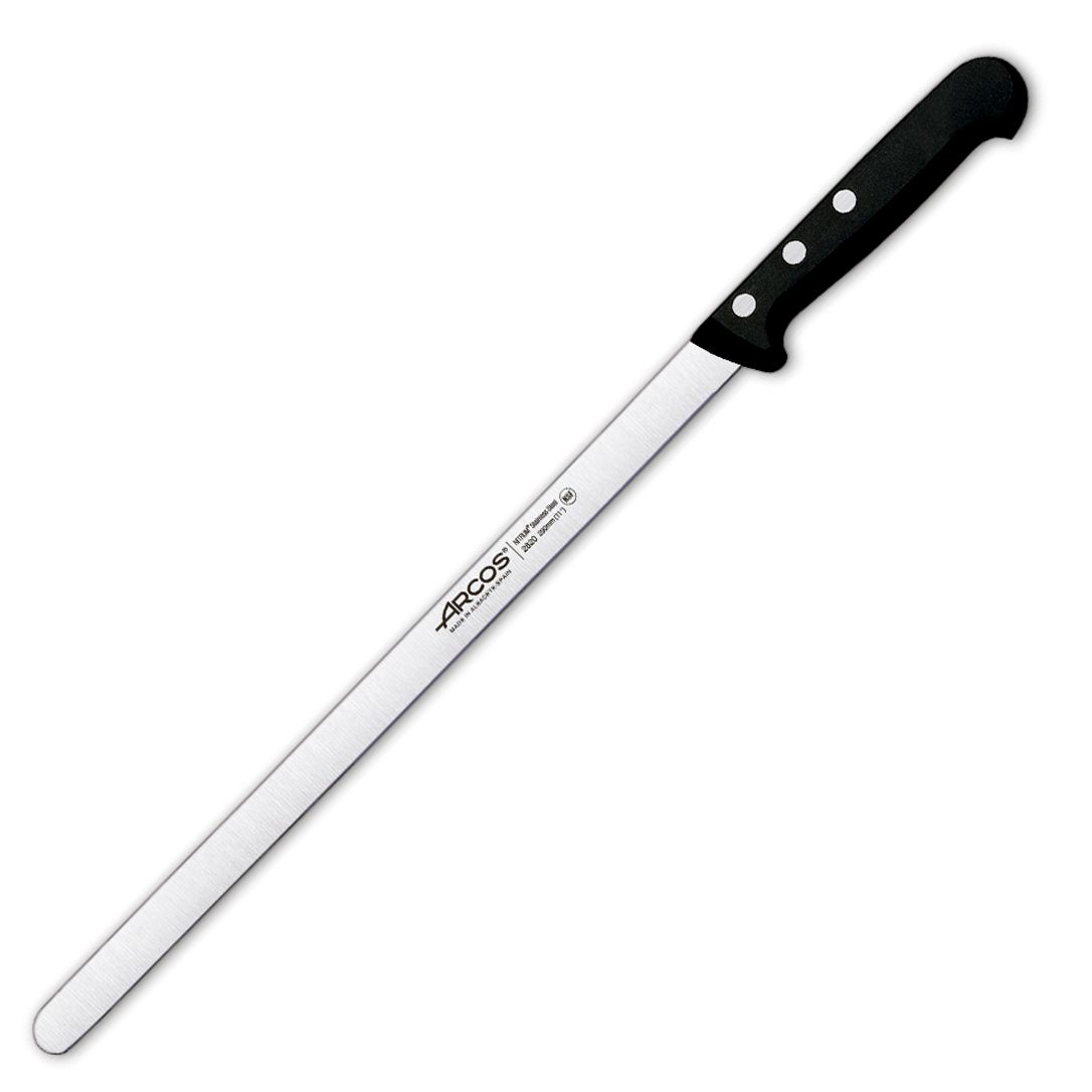 Ніж для хамону 282004 серії Universal від іспанського бренду Arcos рекомендовано використовувати для для нарізання хамону, прошуто та інших видів сиров’яленого м’яса. Завдяки довгому гнучкому лезу ніж забезпечує рівні, тонкі скибки без розривів структури продукту, зберігаючи його текстуру та смак