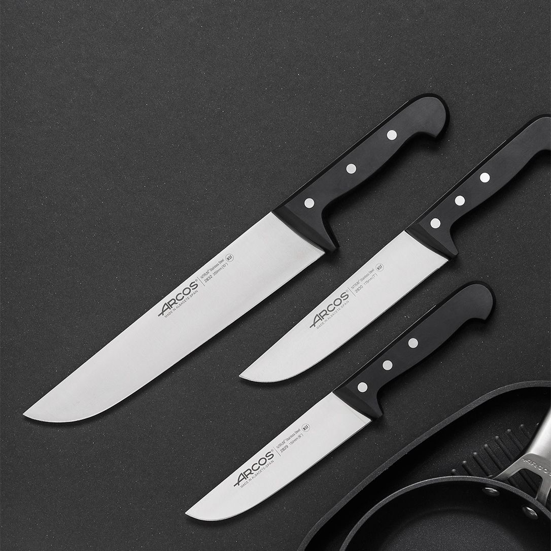 Ніж для обробки м'яса 282904 серії Universal від іспанського бренду Arcos створений для зручної та точної роботи з різними видами м’яса. Його гостре лезо дозволяє без зусиль розділяти волокна, відділяти м’ясо від кісток і виконувати тонку обробку продукту