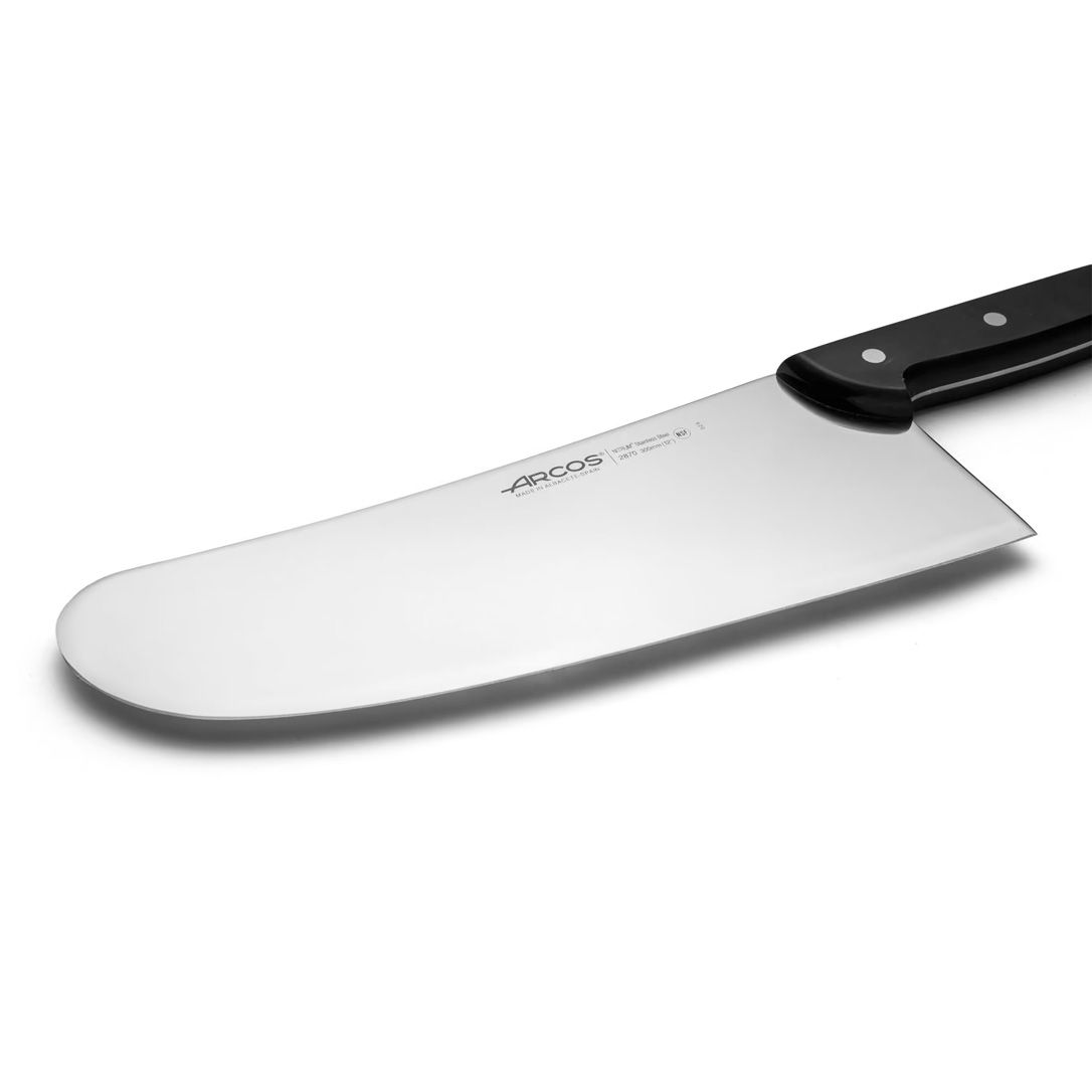 Ніж тесак для риби 287000 серії Universal від іспанського бренду Arcos рекомендовано використовувати для нарізки великої риби та обробки шарів м'яса, в яких зустрічаються дрібні і середньої величини кістки, а також для рубки замороженого філе. Не шматує, а структуровано і чітко нарізає, зберігаючи волокна, які утримують соки і рідини