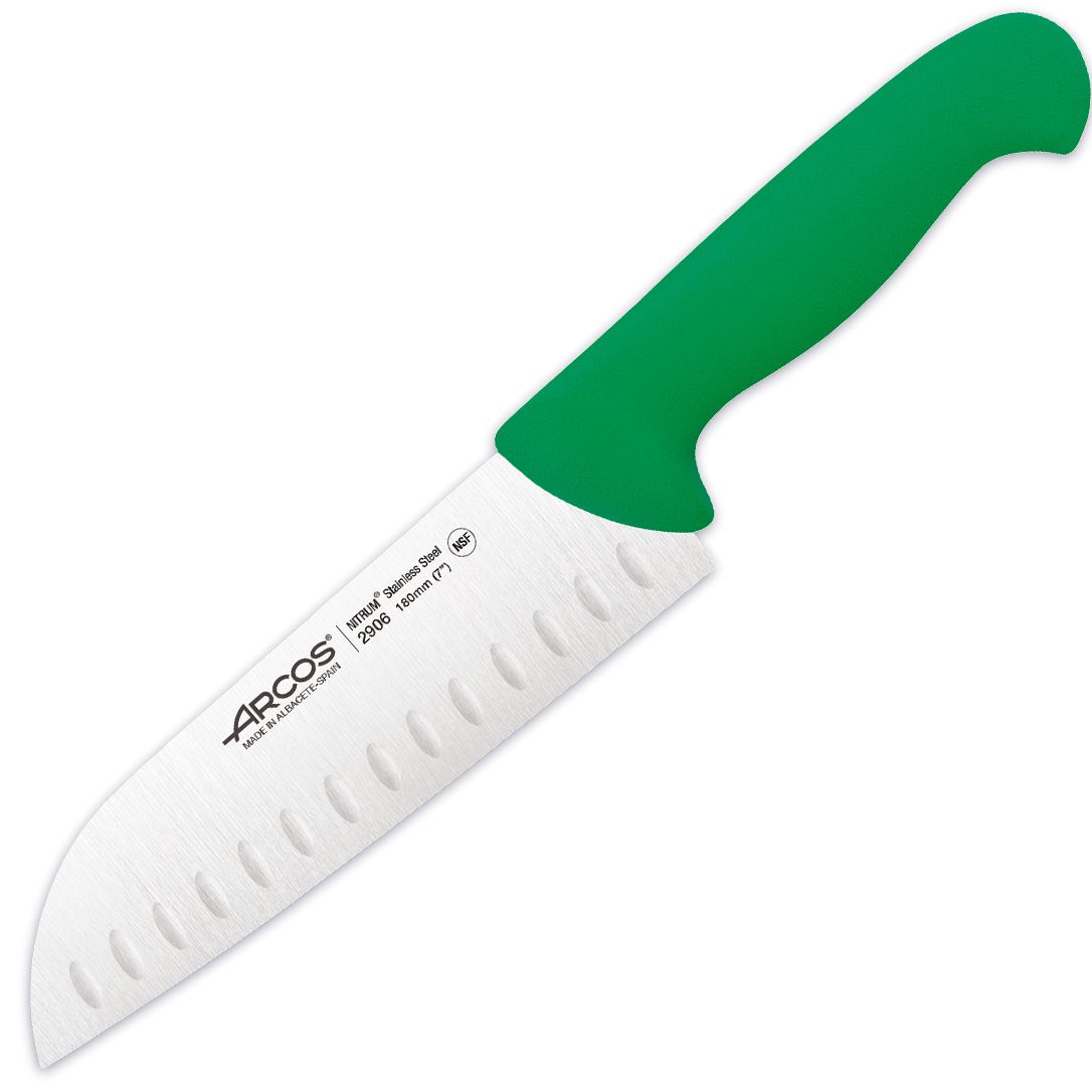 Ніж японський Сантоку 290621 серії 2900 від іспанського бренду Arcos рекомендовано використовувати для швидкого та точного нарізання овочів, риби та м'яса. Завдяки широкому та вигнутому лезу, цей ніж ідеально підходить як для нарізання, подрібнення, так і шинкування