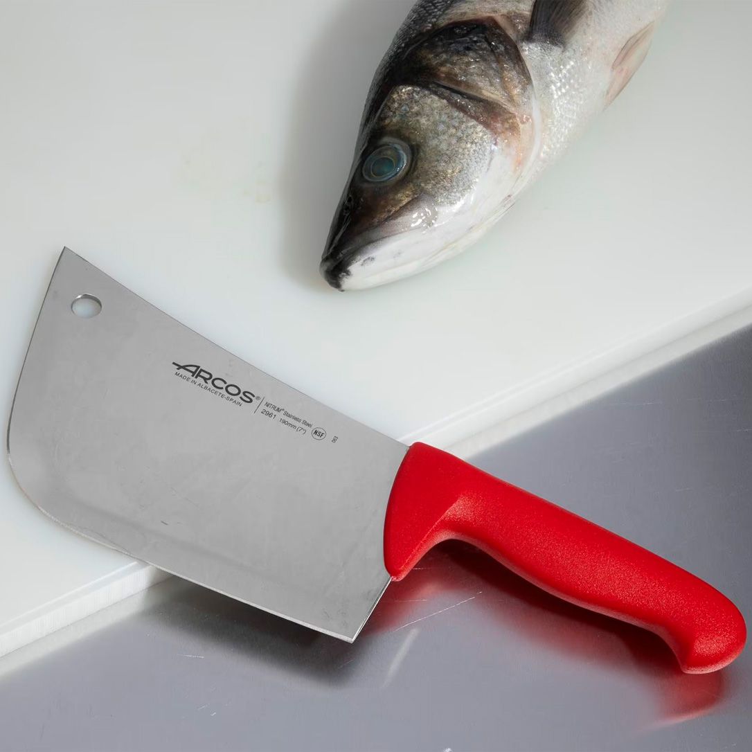Сікач для м'яса 296122 серії 2900 від іспанського бренду Arcos призначений для використання на кухнях ресторанів та харчових виробництвах. Ніж сікач Arcos підходить для обробки шарів м'яса, в яких зустрічаються дрібні і середньої величини кістки, а також для рубки замороженого філе. Не шматує м’ясо, а структуровано і чітко нарізає, зберігаючи волокна, які утримують соки і рідини.