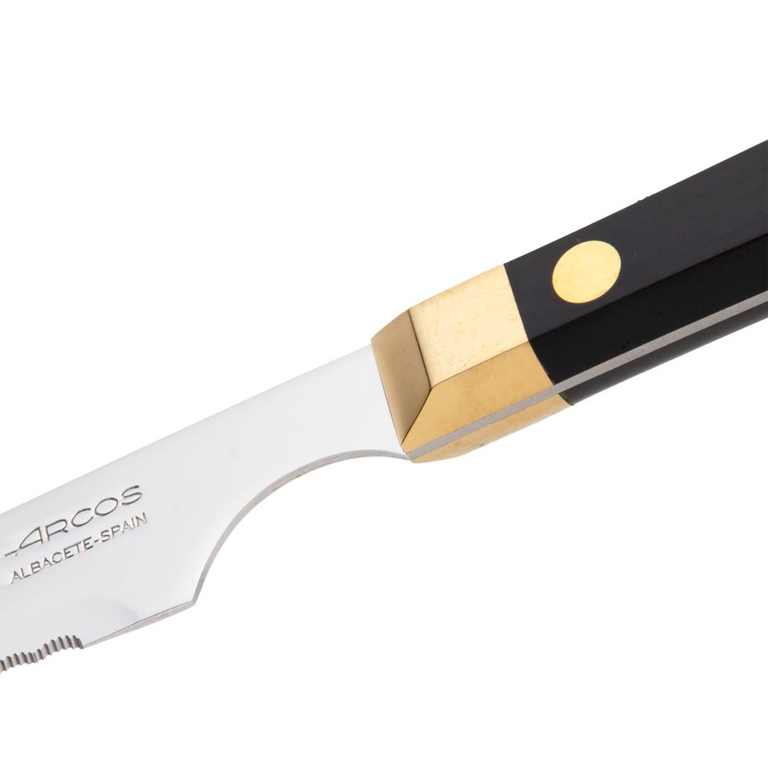 Ніж для стейка 375000 від іспанського бренду Arcos рекомендовано використовувати для нарізки готового м’яса, стейків, не пошкоджуючи волокна.