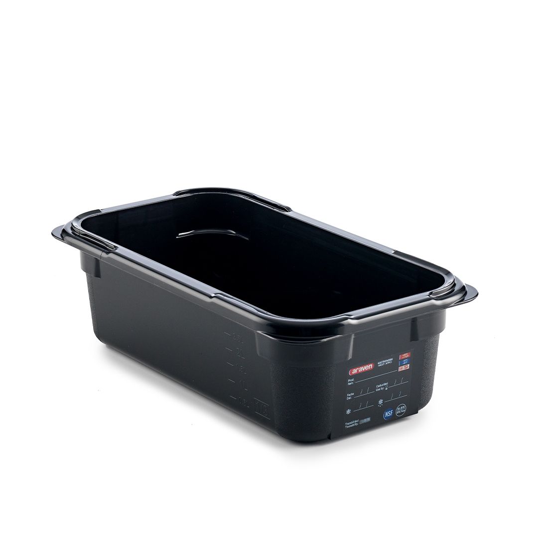 Гастроємність із полікарбонату GN 1/3 від бренду Araven рекомендовано використовувати для викладки та зберігання продуктів у холодильниках. Гастроємності з полікарбонату служать довше порівняно з іншими пластиковими гастроємностями. Матеріал виробу безпечний для контакту з продуктами харчування. Ємність підлягає переробці, завдяки екологічності матеріалу.