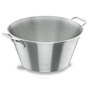 Миска конічна з ручками 30 л із нержавіючої сталі 18/10 іспанського бренду Lacor стійка до ударів, не поглинає запахів, зносостійка, тому незамінна на професійних кухнях. Ручки миски кухонної надійно кріпляться до виробу, що надає зручності та легкості в експлуатації.