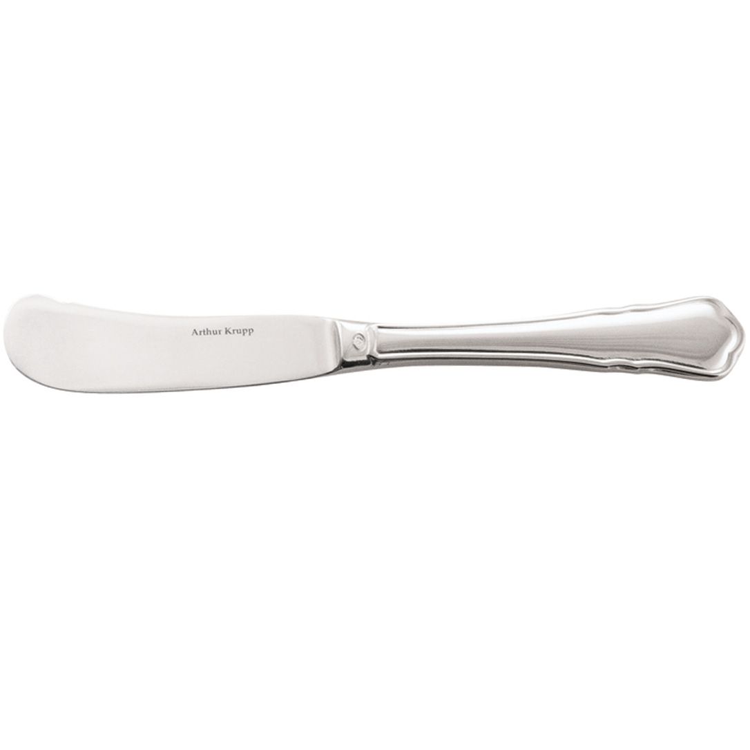 Ніж для масла 62615-73 серії London від італійського бренду Arthur Krupp рекомендовано використовувати для подачі та акуратного нанесення масла, сирів м'якої текстури, паштетів або кремових спредів на хліб, булочки чи тости