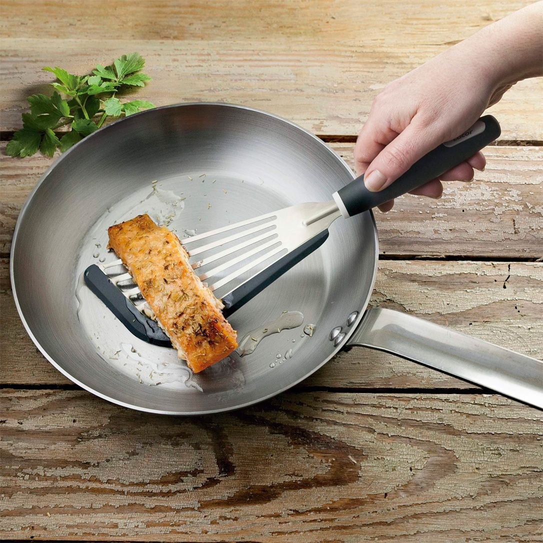 - довговічність — сковорода не деформується та не дряпається, тому можна застосовувати металевий кухонний інвентар під час приготування, наприклад, металеві кухонні лопатки, ложки, вилки, ножі, кухонні щипці, формувальні кільця