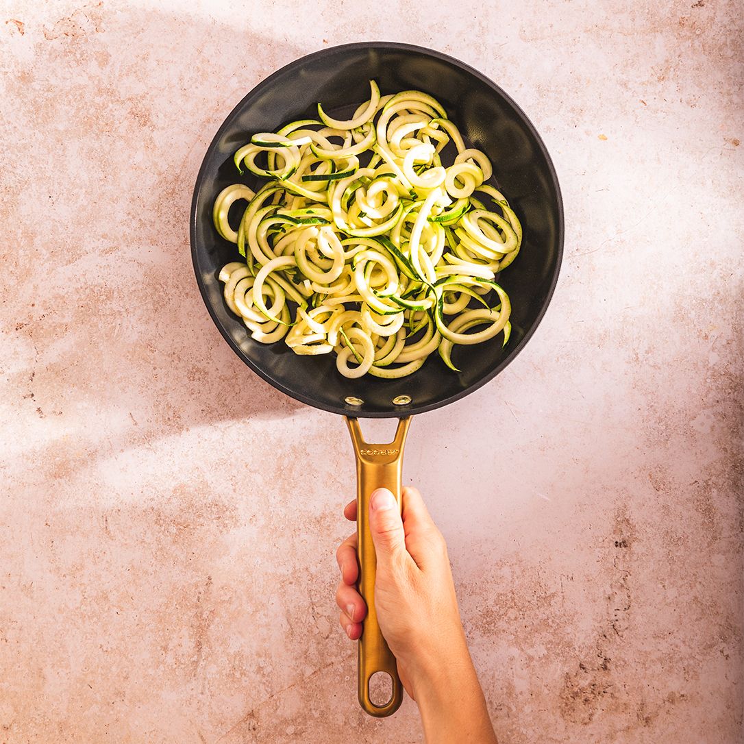 - універсальна — сковорідка підходить для використання з усіма видами плит, включаючи індукцію, а також її можна використовувати в духовій шафі до 220°C