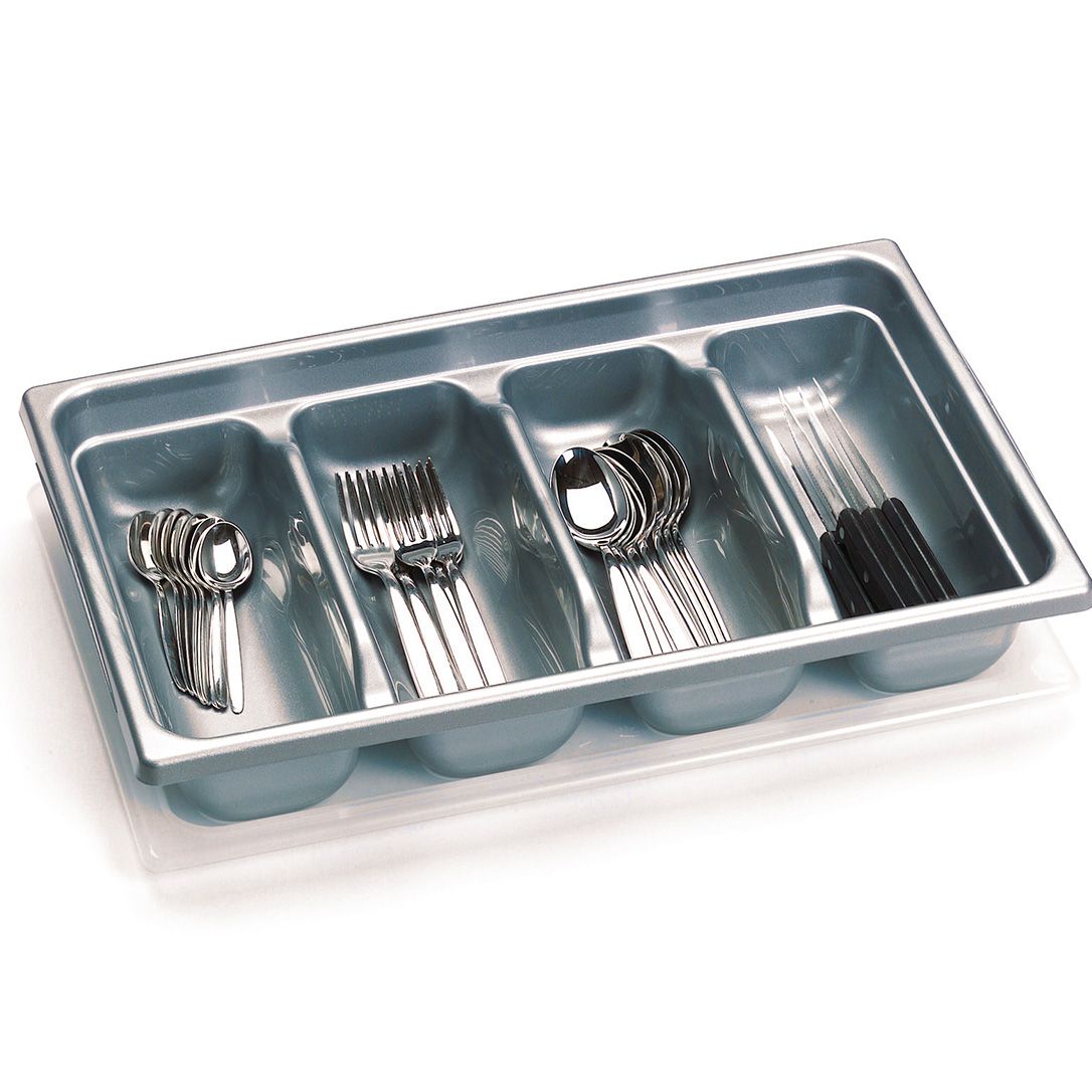 Лоток для столових приборів 86-GRI від італійського бренду Mobil Plastic рекомендується використовувати для подачі столових приладів, роздаткового інвентарю, та інших аксесуарів у професійних закладах, таких як ресторани, кафе або кейтерингові компанії