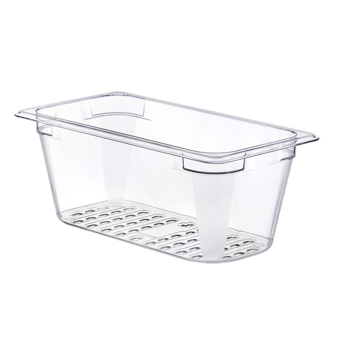 Перфорована гастроємність GN 1/3 із полікарбонату від бренду Araven використовують для відокремлення рідин продуктів, які виділяють соки.
