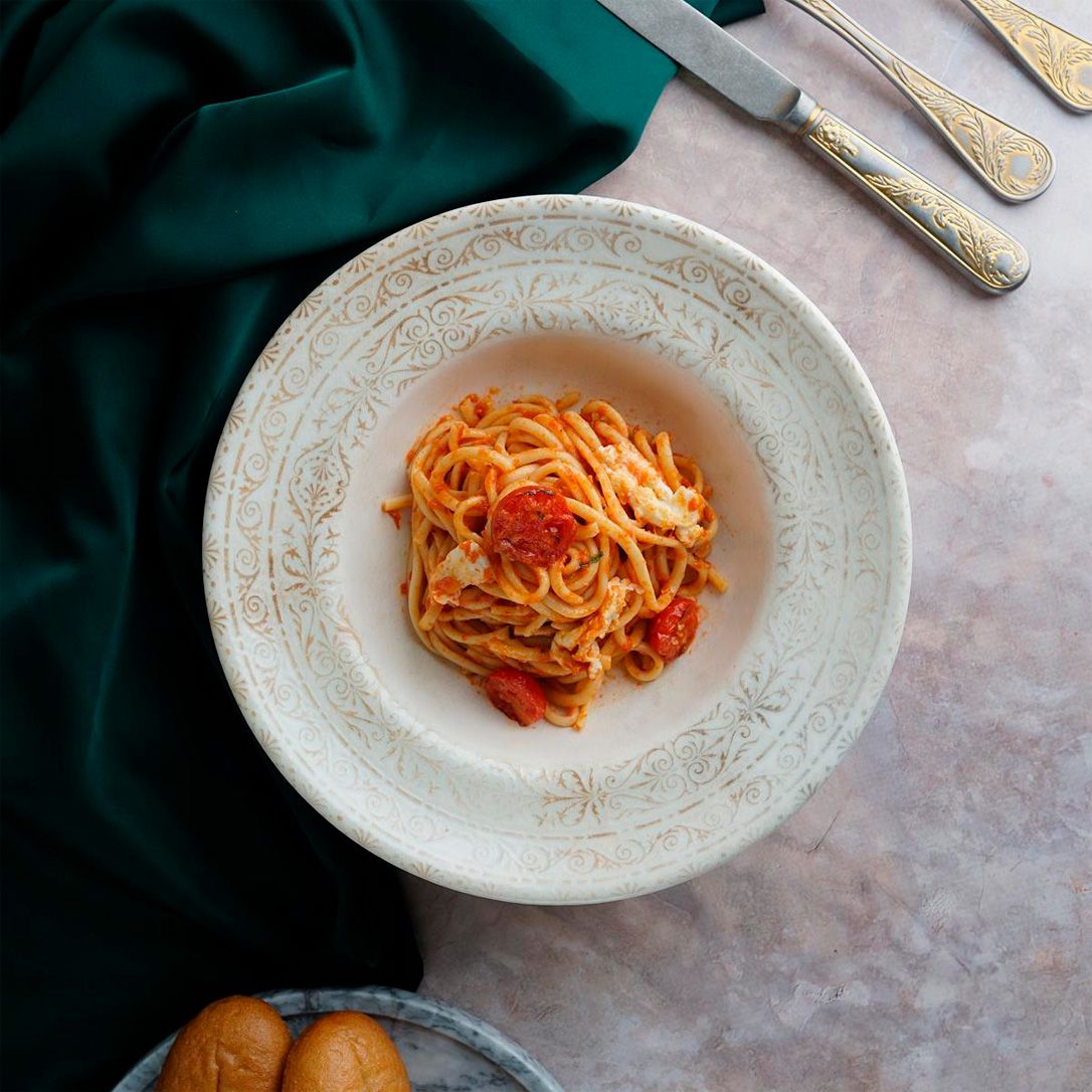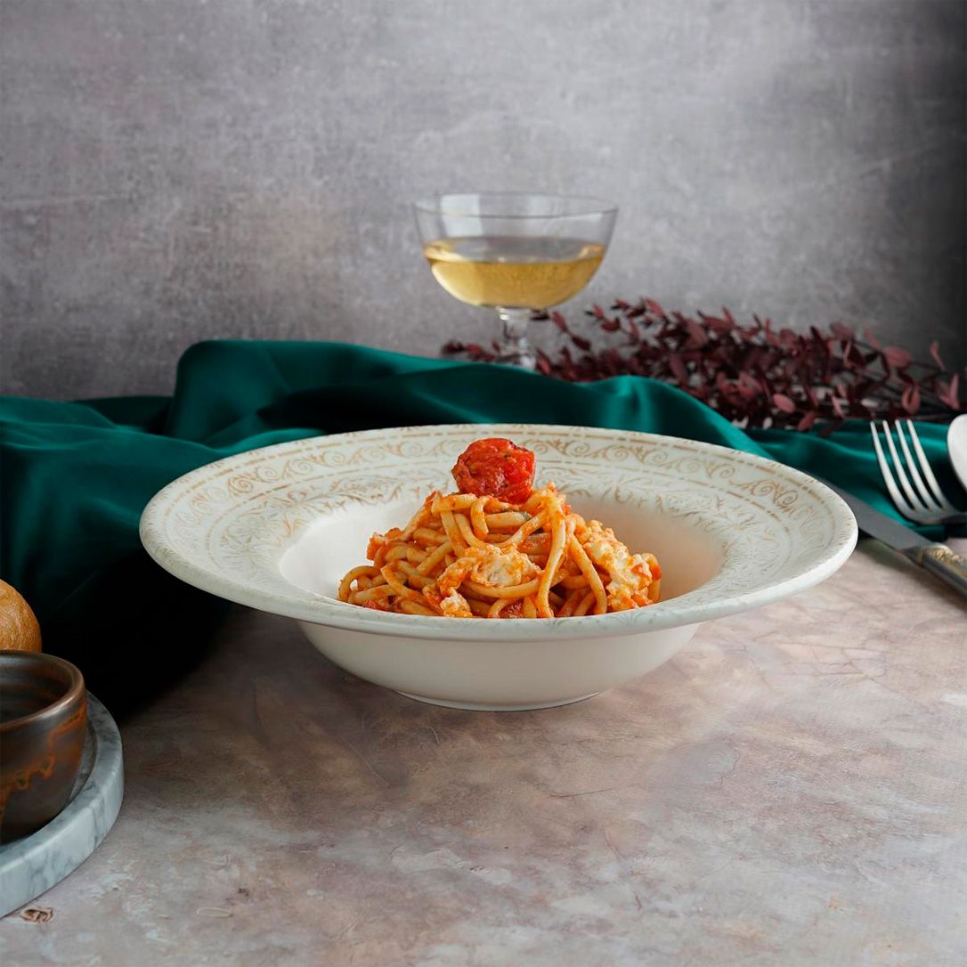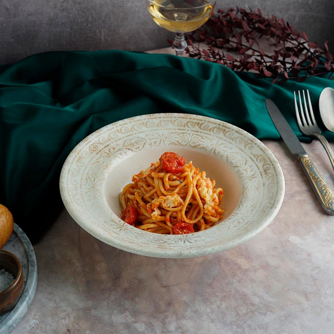 Тарілка для пасти AN-ZT-25-CK серії Antico від турецького бренду By Bone рекомендована для подачі супів, пасти, рагу, салатів, а також інших страв із соусами.