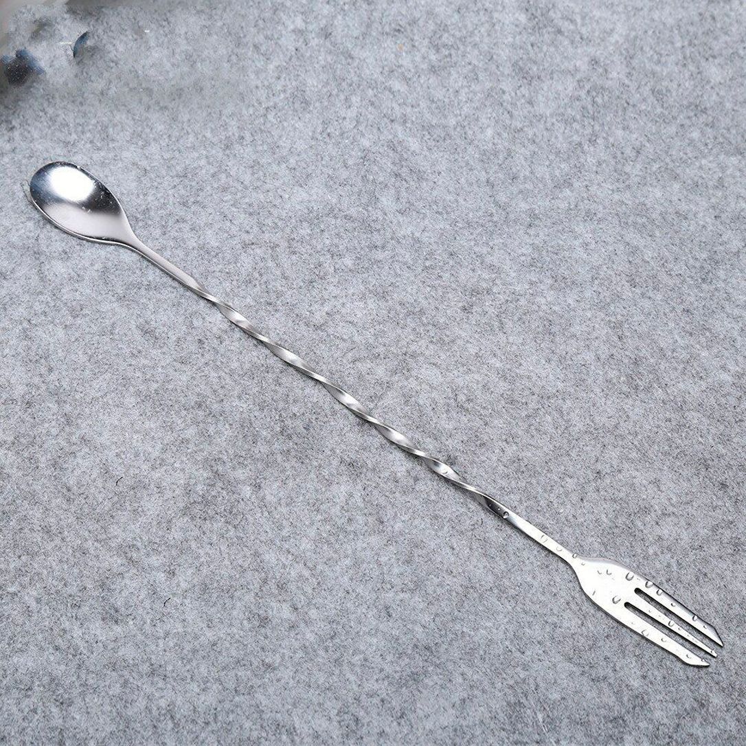 - особливість: має вилку на кінці для зручного захоплення фруктів, ягід, цедри або оливок і акуратного декорування напою