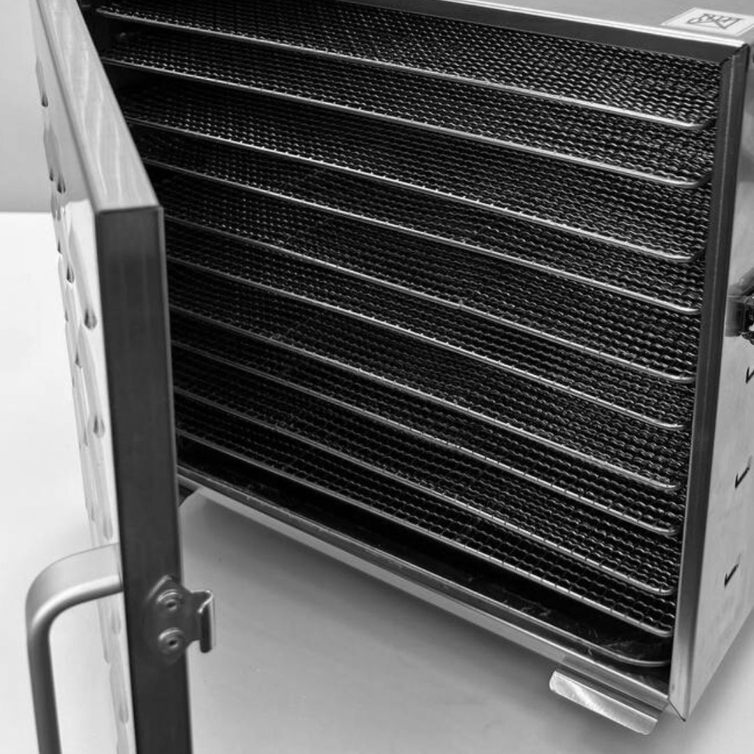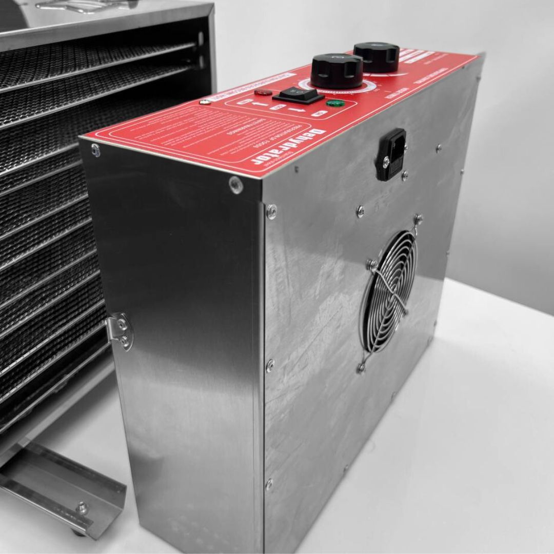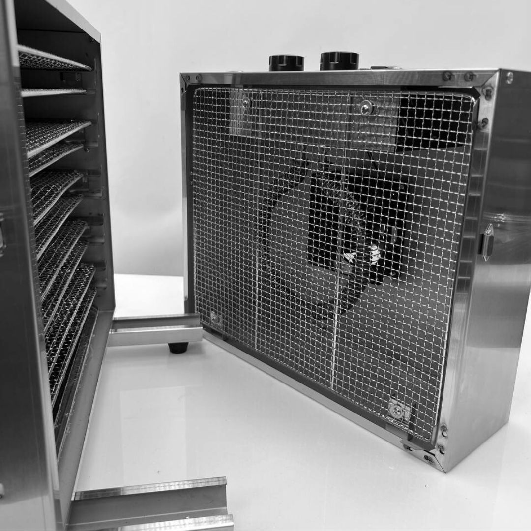 Кількість рівнів: 10. Розмір решіток: 396х396 мм. Робочі температури: +30...70 °С. Матеріал корпусу: нержавіюча сталь. Таймер: до 15 год. Рівень шуму: 42 дБ. Габарити (ШхГхВ): 420х550х380 мм. Потужність: 1 кВт. Напруга: 220 В. Вага: 16 кг.