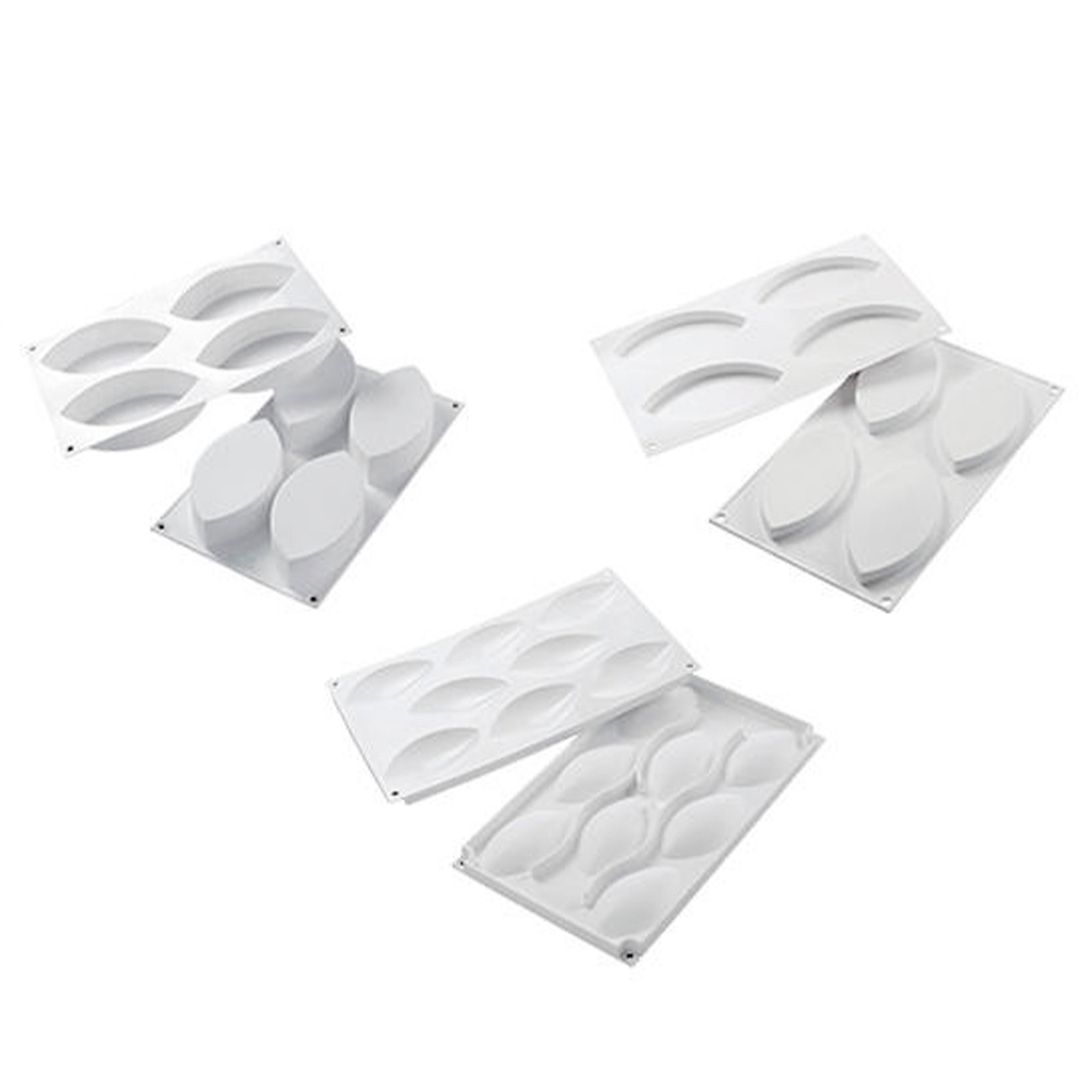 У комплекті 2 силіконові форми для десертів (основа) + 2 силіконові форми для начинки + одна силіконова форма для декорування десертів