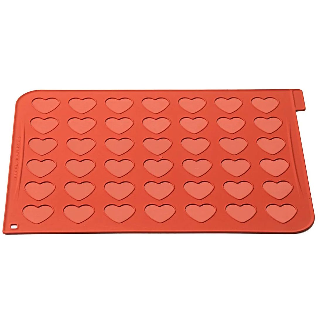 Силіконовий килимок серце MAC03/C від бренду Silikomart використовують як килимок для макарон, килимок для заморозки, а також як килимок для випікання.