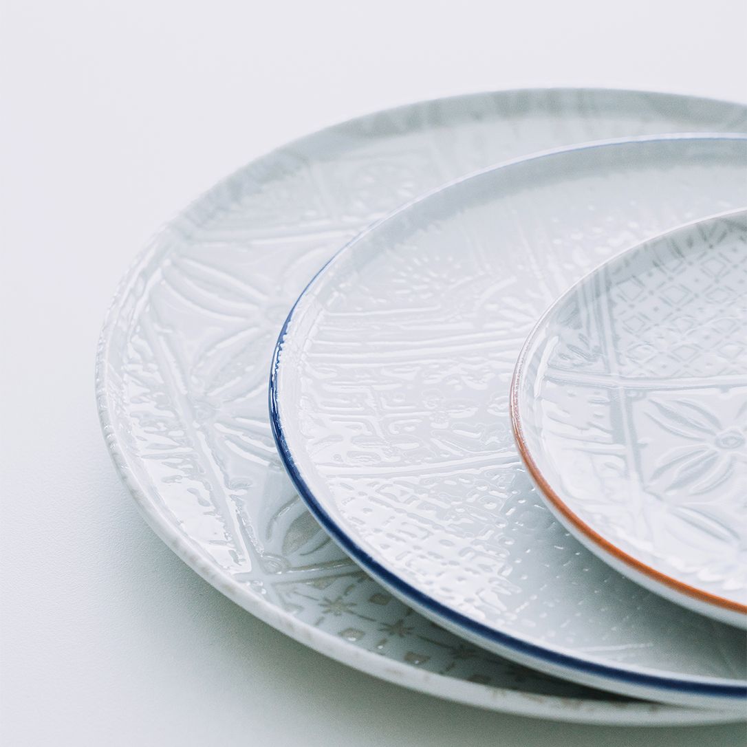 Переваги фарфорових тарілок серії Optimo Mosaic Relief Blue Rim: