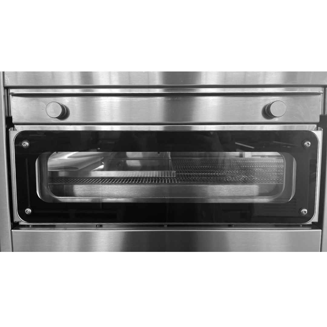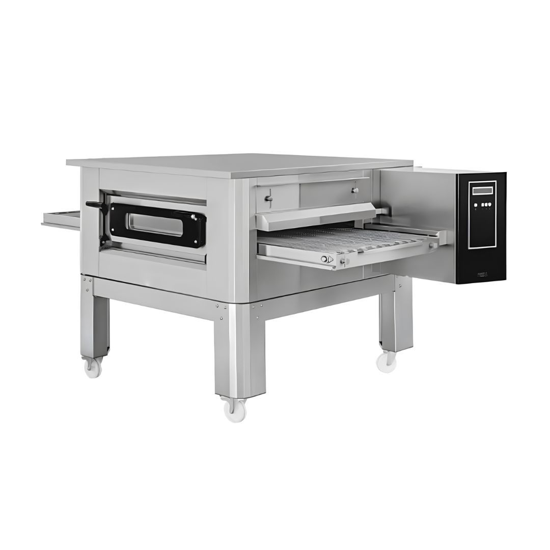 Особливості: швидкий розігрів та приготування; керування за допомогою електронного термостата; підсвічування робочої камери; можливість випікати піцу діаметром до 45 см; автоматичний транспортер для оптимізації часу випікання; підставка в комплекті.