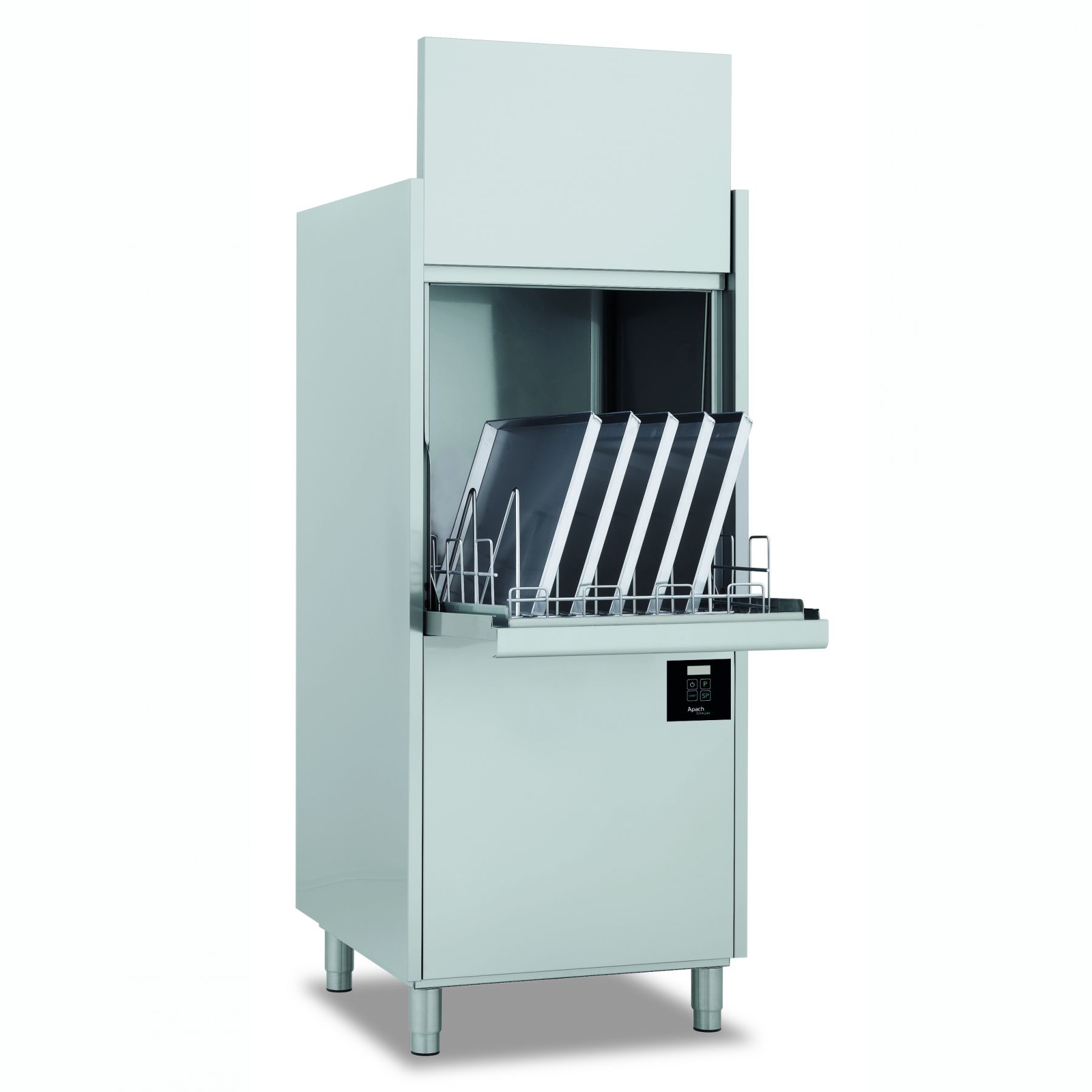 Конструкція дверцят: фронтальна, двосекційна, що утворює стільницю для завантаження та вивантаження касет.