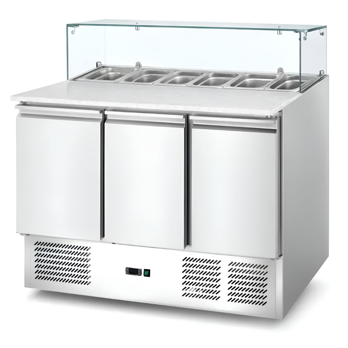 Саладета Hurakan HKN-GXSD3GN-GC 3-х дверна з гранітною поверхнею і склом