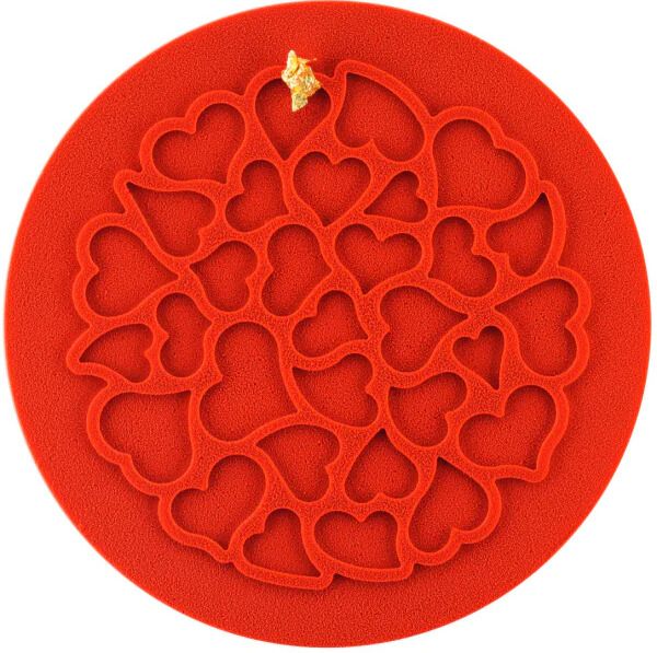 Силіконовий килимок для декору Серце Silikomart із серії DECORATIVE ELEMENTS — професійне рішення для створення виразного та естетичного декору десертів. Великий формат у формі серця діаметром 180 мм дозволяє формувати ефектні декоративні елементи для тортів, мусових десертів і святкових композицій.