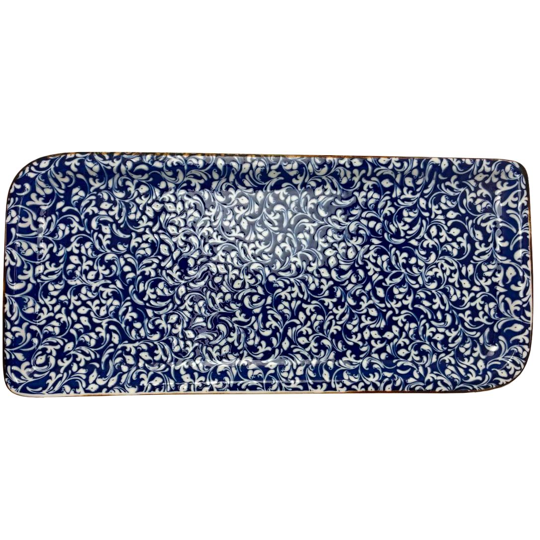 Блюдо прямокутне TN-EС-AR-38-DT серії Tinta Edera Cobalt від турецького бренду By Bone рекомендовано використовувати для подачі м’ясних і рибних страв, вишуканих закусок, суші, сирних і м’ясних нарізок, а також десертів