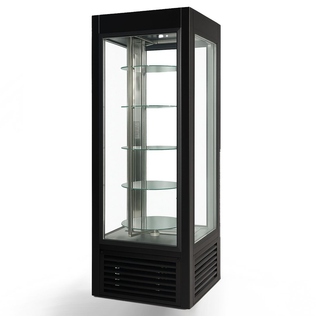Вітрина холодильна кондитерська SW 504 L/O Atena (з агр., чорна, з обертаючимися полицями)